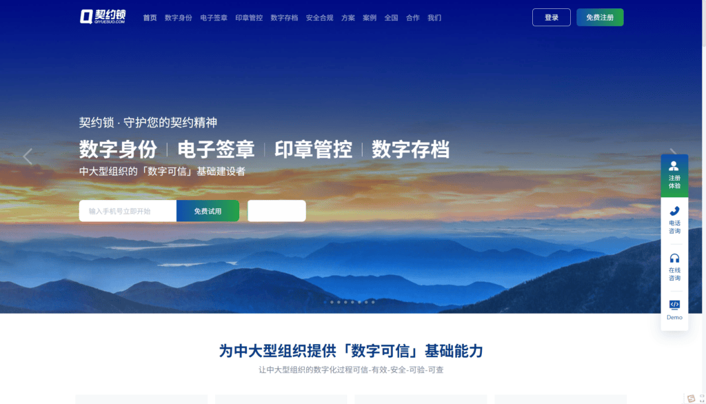 契约锁是一款面向中大型组织的电子合同与电子签章管理平台,提供电子合同云平台、印章管控、数字身份验证等服务,支持公有云和私有化部署方式。其核心功能包括合同在线签署、电子模板、流程配置、批量签署、到期提醒、合同存证、以及与 OA、ERP、CRM、HRM 等系统的集成。
